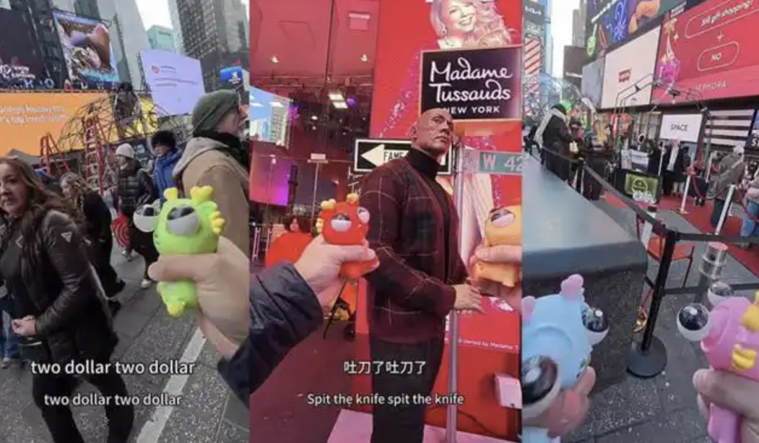 近日,一位名为“刀乐哥”的博主迅速走红。“刀乐哥”通过叫卖的方式在纽约时代广场向老外推销“爆眼龙”捏捏玩具,推销交流过程中无论老外问什么,博主只会使用“吐刀乐、吐刀乐”(two dollar)等几个简单的英文单词。